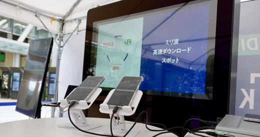 今後も通信トラフィックの増加が見込まれる繁華街や駅、競技場などで、高速で安定した通信サービスを提供するため、より多くの情報を伝送できる高い周波数帯「ミリ波」の活用に取り組んでいます。遠くに電波が飛びにくい、建物などの障害物に弱いという特徴をもつ「ミリ波」でエリアを効率的に構築するための技術を開発し、2025年度の実用化を目指しています。