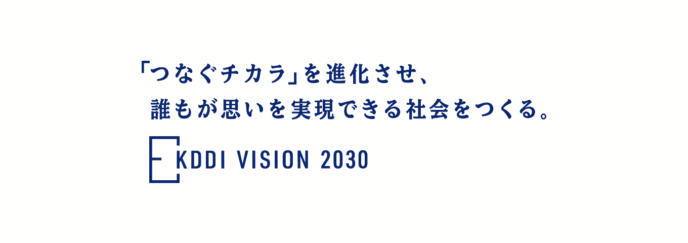 企業理念と目指す姿を、2030年に向けたビジョンとしたのが「KDDI VISION 2030」です。このビジョンの策定にあたっては、社員がいくつかのワーキンググループを作り、改めて企業理念や目指す姿について自分事として理解を深め、ボトムアップで考えました。その結果、素晴らしいビジョンが生まれました。