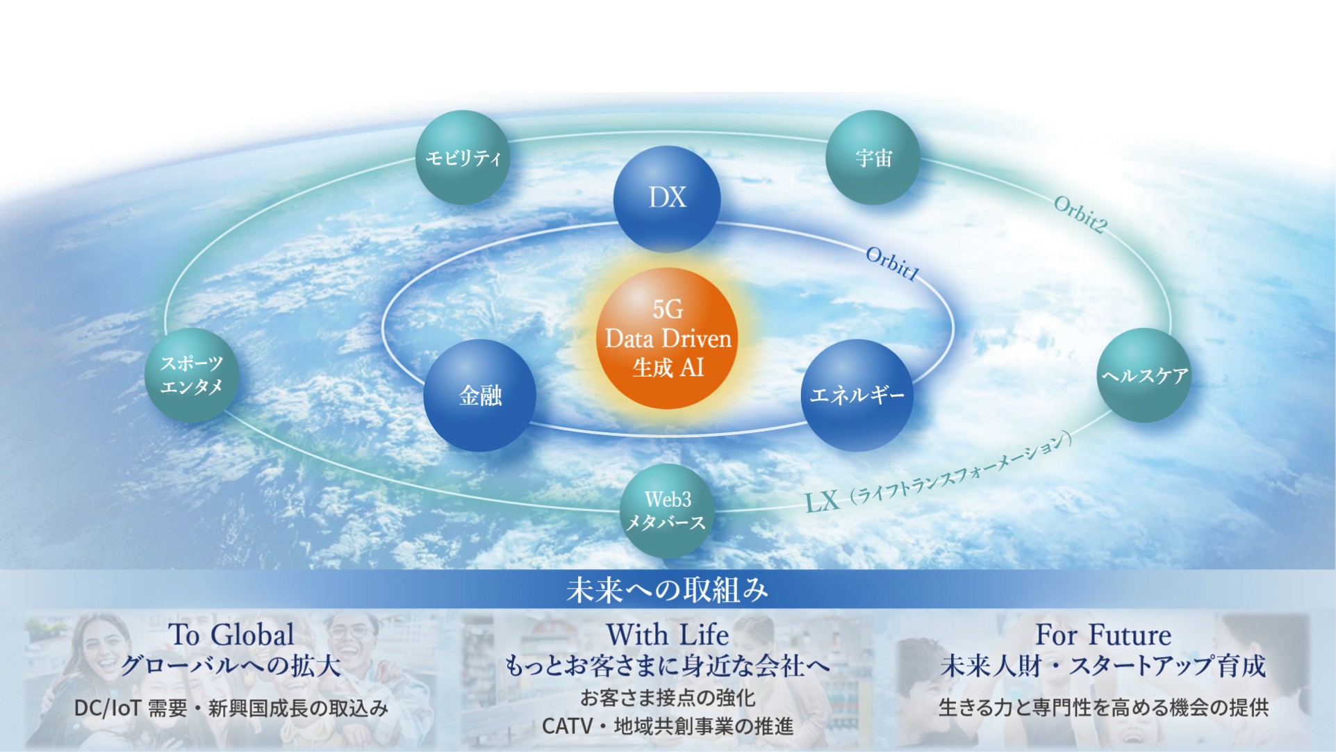 新サテライトグロース戦略では、事業のベースとなる5G通信に今後の基盤となる生成AI、データドリブンを追加してコアとし、その周りに第1軌道(Orbit1)と第2軌道(Orbit2)を配置しています。Orbit1には成長が確実な分野としてDX、金融、エネルギーを、Orbit2にはモビリティやヘルスケアなどを次なる成長領域として設定しました。Orbit2の領域は、事業の成熟度に応じてOrbit1へ組み込むとともに、新たな事業機会に応じて柔軟に入れ替えを行う方針です。