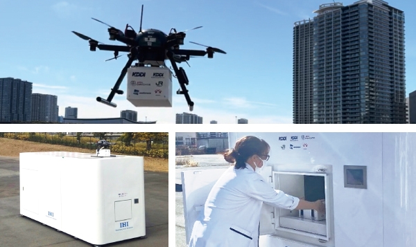 KDDIは、2024年2月、KDDIスマートドローン、日本航空株式会社、東日本旅客鉄道株式会社、株式会社ウェザーニューズ、株式会社メディセオとともに、ドローンポートを活用した医薬品授受管理の実証を実施しました。