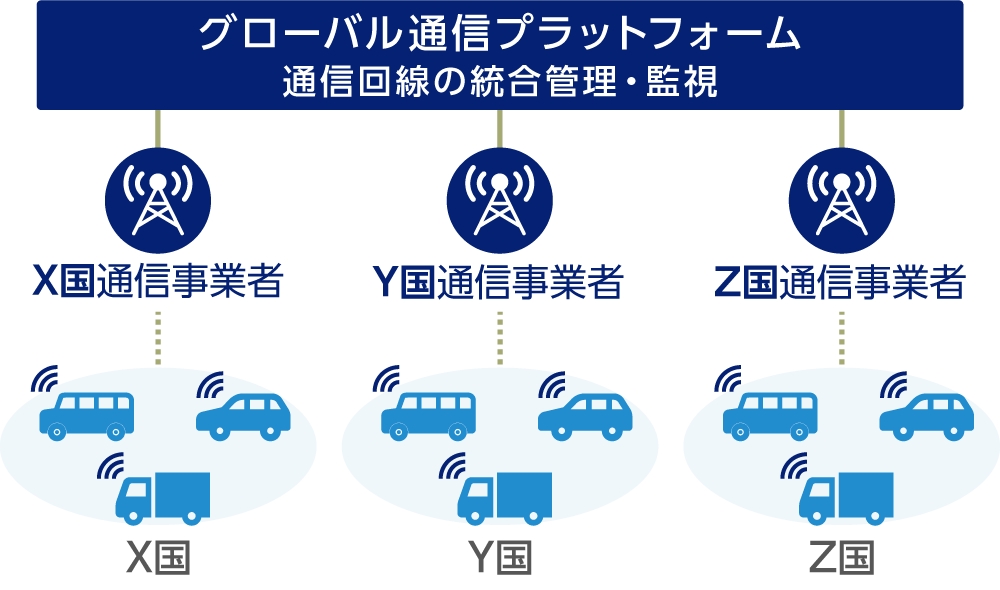 KDDIのGCPは、自動車に搭載されている車載通信機とクラウド間の通信において、高品質で安定した通信をグローバルに提供するための基盤であり、統合的な管理画面を通じて車ごとの通信状態をコントロールする機能なども提供しています。KDDIは、自動車メーカー各社によるコネクティッドサービスのグローバルへの展開を、GCPによってサポートしています。