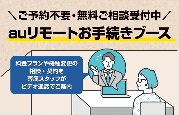 KDDIは2023年11月22日より、兵庫県淡路市のローソン東浦町浦店にて、リモート接客でスマートフォンのご相談やお手続きが可能な無人auショップ「auリモートお手続きブース」の実証実験を実施しています。(2024年9月現在)