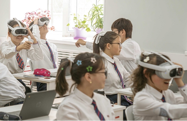 コロナ禍の2021年に開始したオンライン授業支援の「Smart Education」プロジェクトは、当初、学生個人を対象としていました。2023年からは、より多くの学生に高水準な教育機会を提供するため、学校単位の支援へと対象を拡大し、ネット環境に加えて、スマートボード(電子黒板)やVRデバイスなどのデジタル教育環境を提供しています。現在まで、首都ウランバートルと地方の合計6校で、12,500人の子どもたちがこのプロジェクトを活用しています。