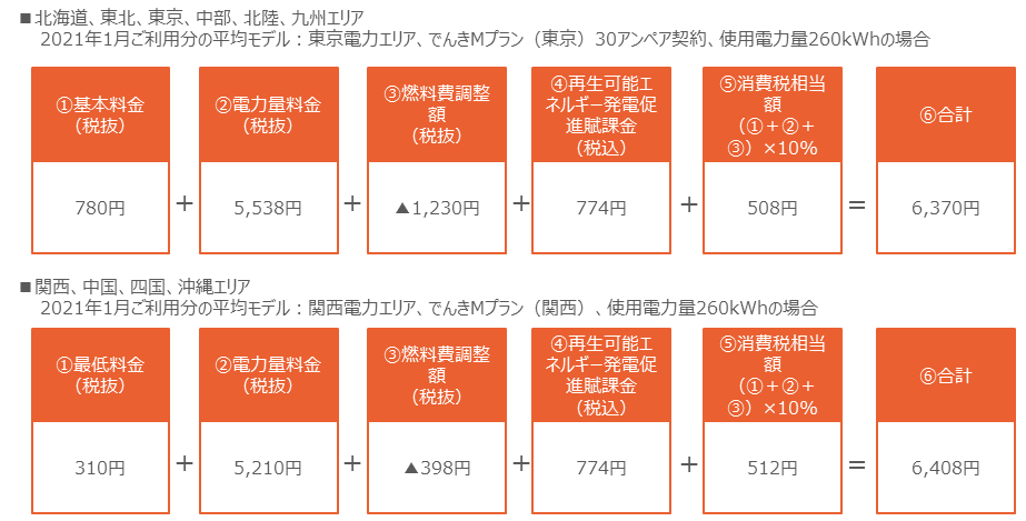 - でんきサービスは他の大手電力会社と同様に燃料費調整制度 (